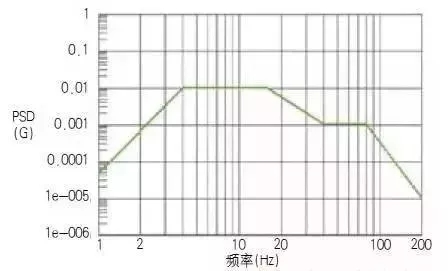 隨機振動試驗具體測試方法《GB/T 4857.23-2012》中有介紹,這里只介紹三個力學條件量值功率譜密度 (PSD)、加速度均方根 (Grms) 和振動時間。國內(nèi)外通過采集運輸數(shù)據(jù),利用統(tǒng)計學制定出隨機振動譜。以ASTM D4169-08為例,如圖: