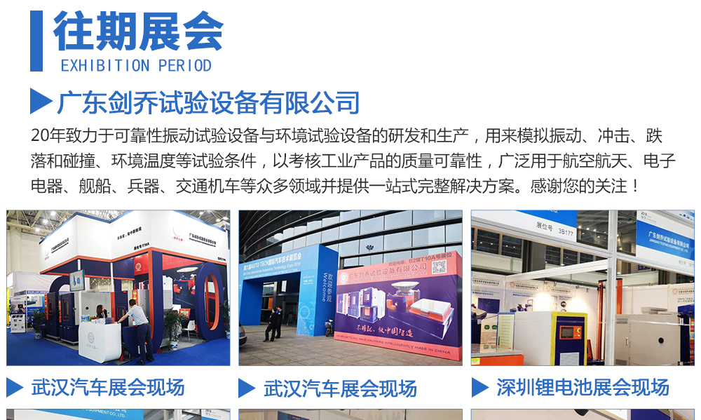 您好!歡迎光臨廣東劍喬試驗設備有限公司官網!主營:振動臺,振動試驗臺,電動振動臺,高頻振動臺,沖擊試驗臺